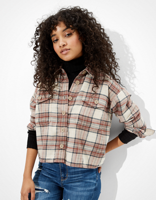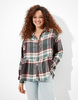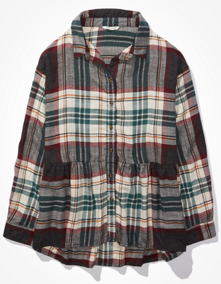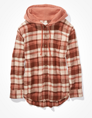 10. AE Plaid Flannel Hooded Button-Up Shirt