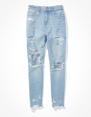 4. AE Stretch Ripped Highest Waist Mom Jean